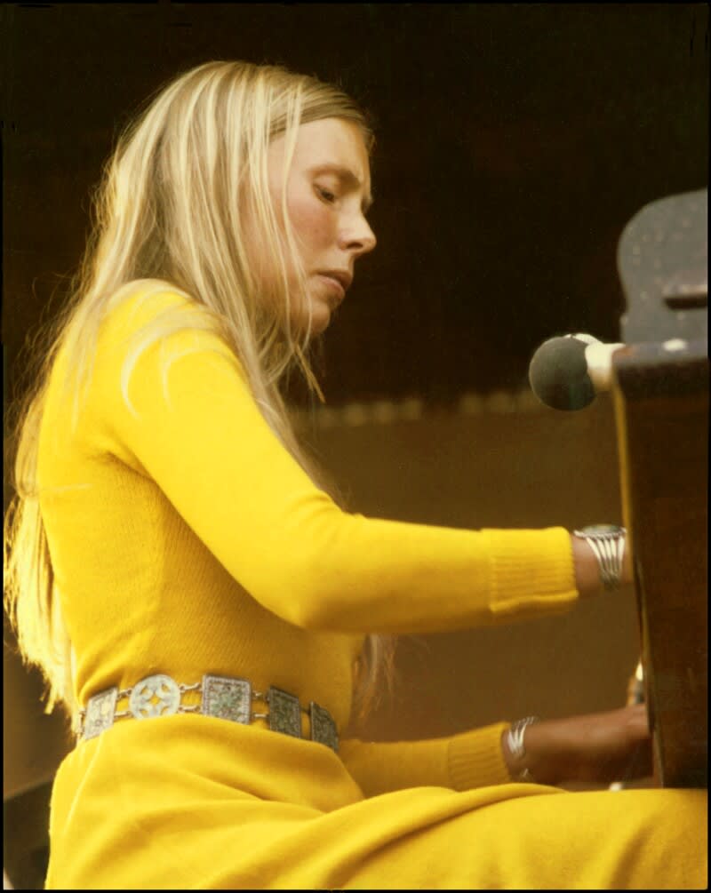 And we sign off with this photo of our beloved Canadian Goddess, Joni Mitchell softening the hearts of an out of control audience.
